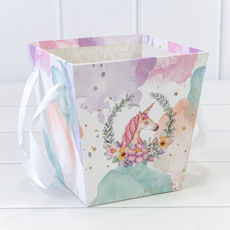 Коробка "Ваза для цветов" 14,5*14,5*15 с ручками "Единорог" 1/10 1/120 Арт: 720107/5
